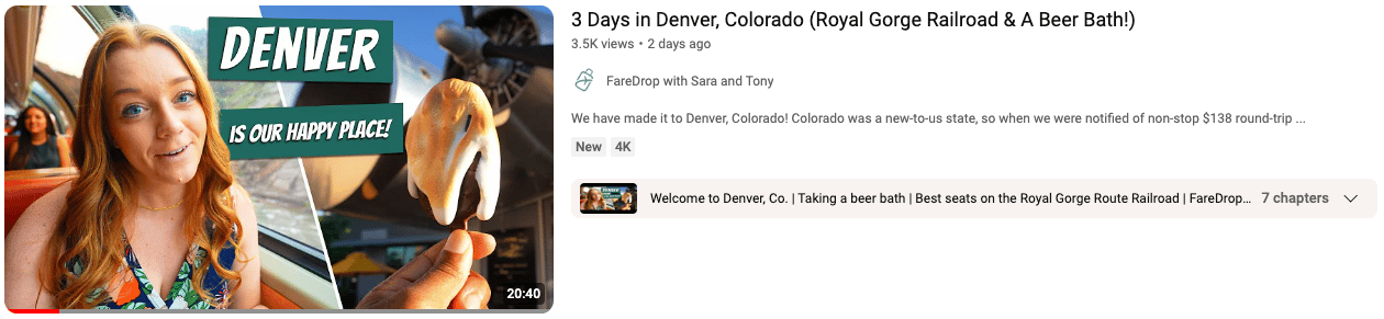 As I mentioned in my last email, after a crazy couple months of travel, we're taking a little time off through the end of the month to deal with some life admin and to get caught up on a lot of work behind the computer. Since I don't have a lot of exciting travel updates, today's email is going to look a little different. Even though we've been stationary for the last couple of weeks, the FareDrop team has been hard at work! FareDrop's Dream Job Winners! Remember a couple months ago when we were hiring for the FareDrop dream job? Over 700 people applied, we narrowed it down to three finalists, and y'all voted for... Sara and Tony! They are now traveling the world for the next 6 months on flight deals they find using FareDrop! And they are documenting their adventure every step of the way! Sara and Tony's enthusiasm for exploring new places reminds me a lot of us back in the early days! So, if you miss the budget traveler version of Kara and Nate, you're going to love Sara and Tony's videos. Their first two videos are live on the new FareDrop Youtube channel! Sara and Tony found so many fun things to do in Mexico City on a budget. I think it's time for me and Kara to plan a second trip there just to eat! Mexico City $302 Round Trip! We've spent a lot of time in Colorado, and they found so many fun things to do that I didn't even know existed. A beer spa, a rage room, a train?! Maybe it's time for us to spend a little less time in the mountains and more time in the city? FareDrop Memorial Day Sale If you want to start traveling more and spending less, check out FareDrop's Memorial Day Weekend Sale! Now through Monday, you can get a year long membership to FareDrop Pro for just $49!